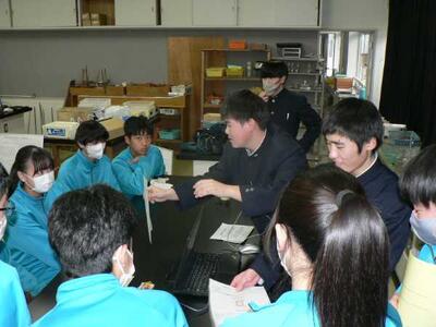 卒業生も多く進学している千厩高校産業技術科の7人の先輩たちが1212(金)に出前授業のために来校しました。「モノづくり」の楽しさを伝えに本校卒業生も2人参加してくれました。2年生が授業を受けましたが、千厩高生は終始、笑顔で明るく高校の授業の魅力を伝えてくれました。3年生は今月進路選択の時期となります。2年生も1年後のことを意識しながら学べたようでした。