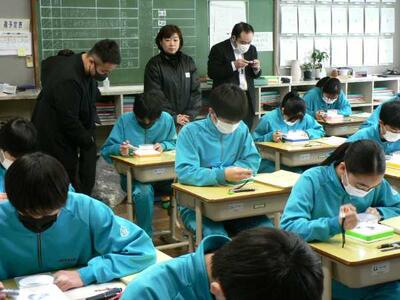 1月29日(木)に次年度入学生を対象にした入学説明会が行われました。入学予定の6年生たちは、6校時授業(1年生:数学、2年生:国語、3年生:美術)を参観し、先輩が真剣に学習している様子を見て、気持ちを引き締めているようでした。中学校での学習体制や生徒会活動、決まり事などの説明を受けて、中学校での生活の仕方について確認していました。また保護者の皆様には説明会の前段に情報モラル講習会を開催し、県警察スクールサポーターの小野寺さんから、中学校期のSNSとの付き合い方について保護者としてどう対応したらよいのか、ということについてお話をいただきました。その後、入学説明会を開催し、熱心に耳を傾けていただきました。