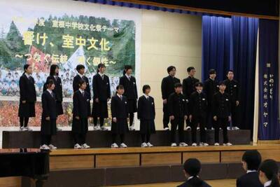 3月12日(木)、令和7年度卒業証書授与式が行われました。21名の3年生が学び舎を巣立っていきました。室根中学校に入学してからの3年間で大きな成長を遂げた3年生。職員からもそのような声が良く聞かれるようになったこの1年間でした。入学時、コロナ感染症予防のために制限されてきたことも、緩和され、色々なことにチャレンジできるようになった半面、突然の変化に戸惑うことも多かっただろうと思います。また部活動の任意加入や地域展開が進み、地域クラブに加入したり、部活動以外の興味あることに取り組んだ人も多かったのではないでしょうか。最高学年となったこの1年は、様々な個々の輝きを見ることができました。体育祭運動会や部活動、文化祭など熱心に行動する姿は、後輩の良き手本となりました。3年生の前向きに活動する姿に、1・2年生も熱い思いを感じとっていたと思います。3年生の皆さん、ありがとうございました。