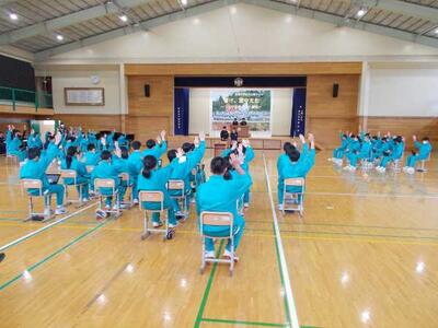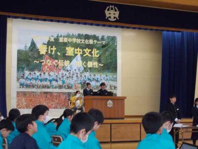 今回の総会では「室中いじめ撲滅宣言」(さしみ宣言)が全校生徒の手で承認されました。